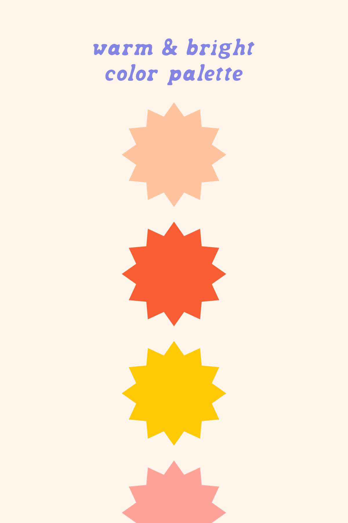 Warm & Bright features a palette of sunset colors: peach, coral, and yellow.